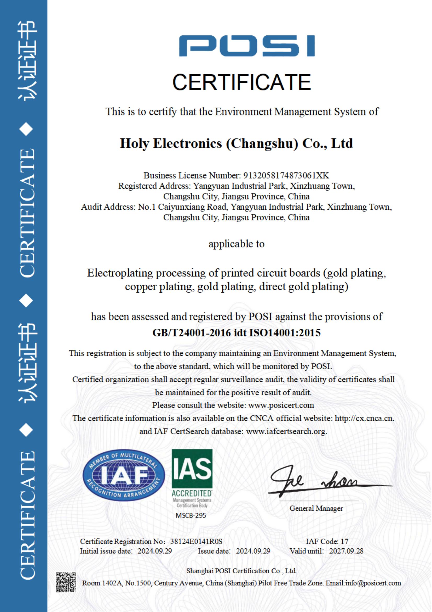 Environmental management system certification